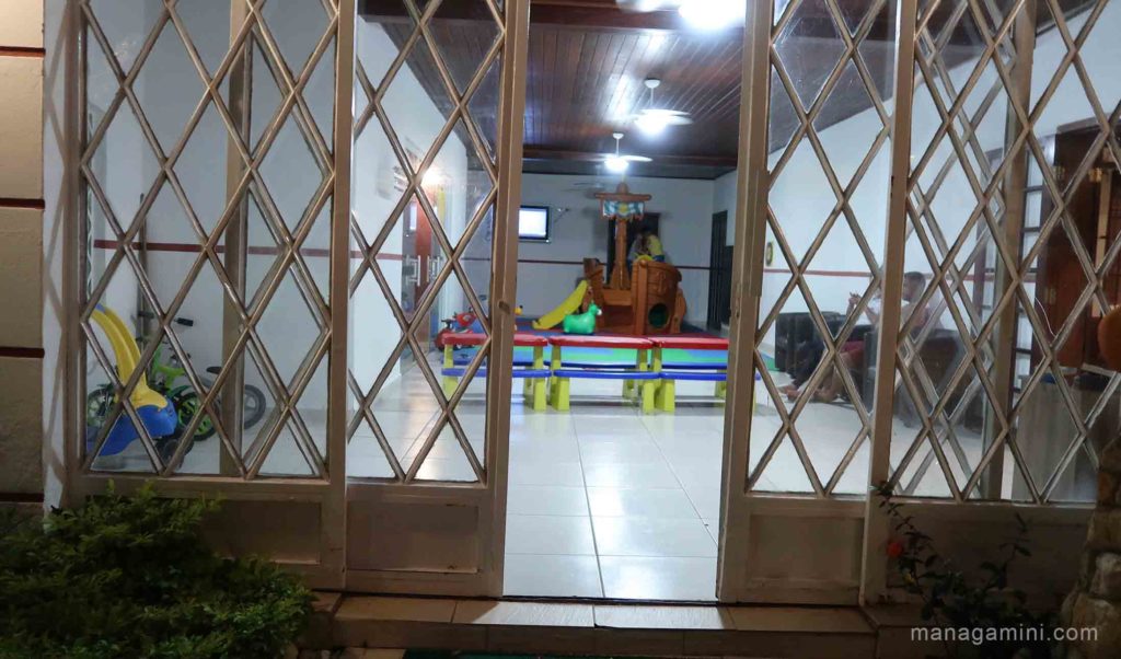 - Para quem vai com criança: existe um ambiente com brinquedos (coberto) e um playground bem legal no jardim;